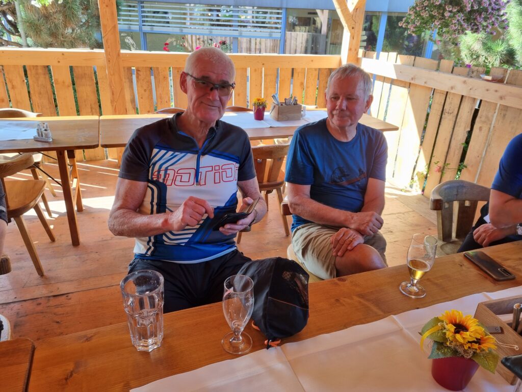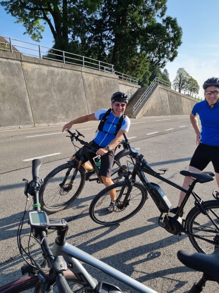 Mein grosser Respekt gilt den sechs Radlern ohne Strom, da es an beiden Tagen immer wieder runter und rauf ging. Sie haben das aber hervorragend gemeistert. Auch die sieben Fahrer mit Unterstützung haben eine grosse Leistung gezeigt. Denn ohne Treten geht es auch mit Strom nicht von selbst . Ein herzliches Dankeschön an alle, die unterwegs eine Getränkerunde übernommen haben . Danke auch vielmals für die positiven Rückmeldungen zur diesjährigen Turnfahrt. Ein Dank geht in diesem Atemzug auch an Gista, der mit mir die Route besprochen und zusammengestellt hat. Leider konnte er dann selber nicht teil-nehmen. Wir wünschen ihm natürlich gute Besserung und hoffen, dass er beim nächsten Mal wieder dabei sein kann. Gute Erholung auch an Jürg, der nach der Rückenoperation noch nicht teilnehmen konnte, aber uns mit einer Erfrischung in Lütisburg belohnt hat. Ebenfalls musste Sämi kurzfristig absagen. Auch ihm wünschen wir alles Gute. Im nächsten Jahr werden wir wahrscheinlich eine Wanderung machen. Wer Vorschläge hat, darf sich gerne bei mir melden.