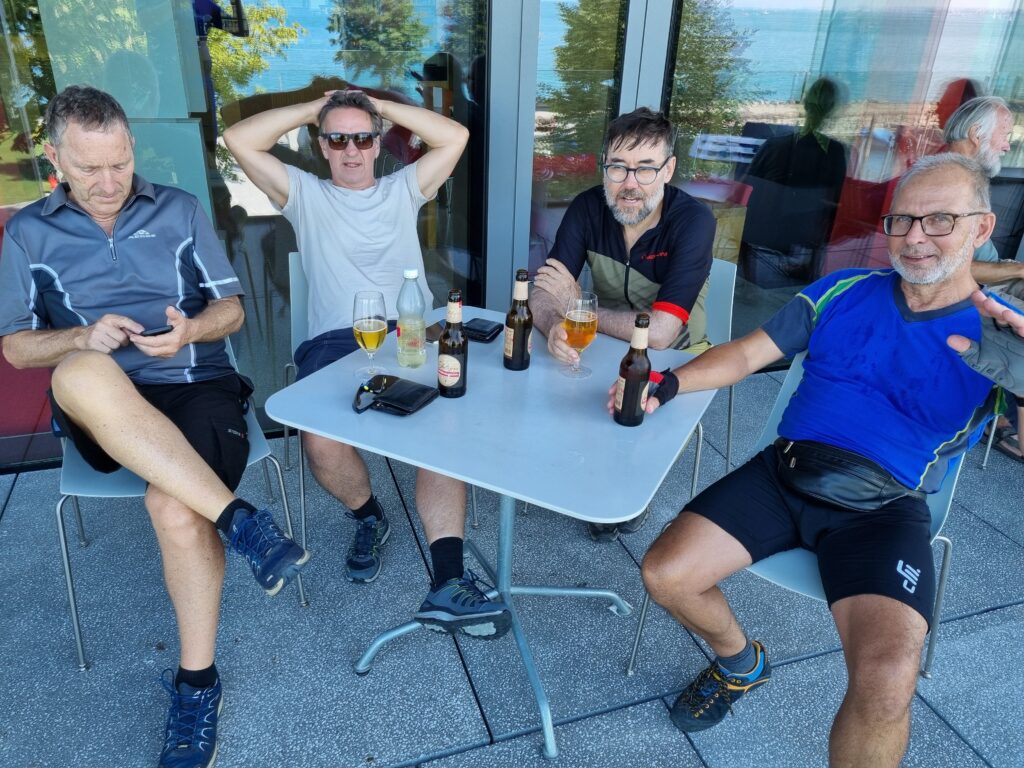 Bereits auf Betriebstemperatur pedalten wir weiter nach Unter- und Oberegg und Häggenschwil nach Freidorf und runter an den Bodensee. Teilweise dem See entlang und manchmal auf Radwegen neben der Hauptstrasse fuhren wir an den Sandskulpturen vorbei zum Würth Museum. Ein Teil der Gruppe gönnte sich ein kühles Bad im Bodensee und die anderen ein ebenfalls kühles Bier auf der Restaurant-Terrasse.