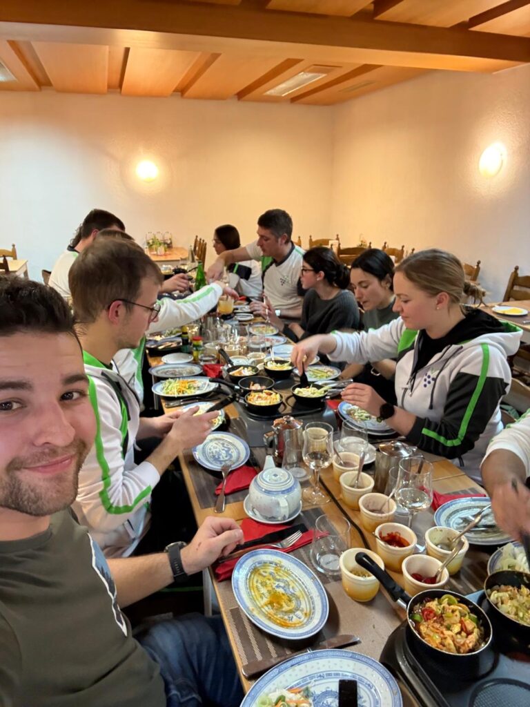 Nach dem Curling ging es zum kulinarischen Teil über. Im Hotel Toggenburg liess sich die Gruppe mit Wok-Pfännchen à discrétion verwöhnen. Mit vollen Bäuchen trat man schliesslich den Rückweg an.