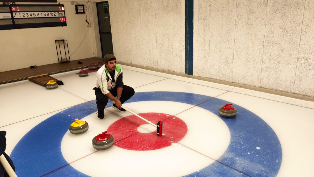 Nach dem Umkleiden und Aufwärmen folgte eine Einführung, und anschliessend wurden die ersten Versuche unternommen, die Steine gezielt zu platzieren. Während es anfangs eher dem Zufall überlassen war, wo die Steine landeten, stellte sich mit der Zeit ein Gefühl für das Spiel ein, und es gelangen immer präzisere Würfe.