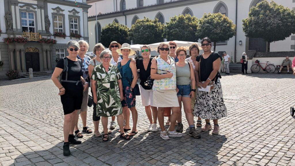Die Turnfahrt der Frauenriege ging dieses Jahr nach Ravensburg. Während der kurzweiligen Zugfahrt mit vier Umstiegen wurden die Frauen mit einem 5er mit Weggli und einem Cappuccino überrascht.