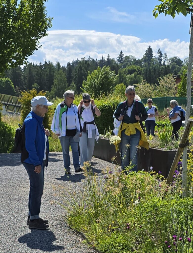 Doch bald konnte die Reise trotzdem beginnen. Mit der S4 nach Buchs - Sargans, dem Walensee entlang nach Ziegelbrücke, umsteigen, weiter nach Wädenswil. Der Bus brachte die Gruppe ins Campus Grüntal, Berufsschule der Gärtner, Abteilung Forschung. (ZHAW-School of Life Sciences and Facility Management). Herrliche Blumenbeete waren zu sehen. Doch zuerst war das Mittagessen angesagt, auf dem schönen Terrassenplatz mit Blick auf den Zürichsee. So schmeckte das Essen doppelt gut. Die Tochter einer Teilnehmerin arbeitet auf diesem wunderschönen Gelände. Sie führte uns durch die Anlagen und gab spannende Einblicke und Infos in die Tätigkeit dieses Instituts: z.B forschen, alter Samensorten, begrünen von Hausfassaden, wasserspeichernde Pflanzen, und vieles mehr. Es blieb noch Zeit durch die Gärten zu schlendern bevor die Gruppe wieder weiter zog.