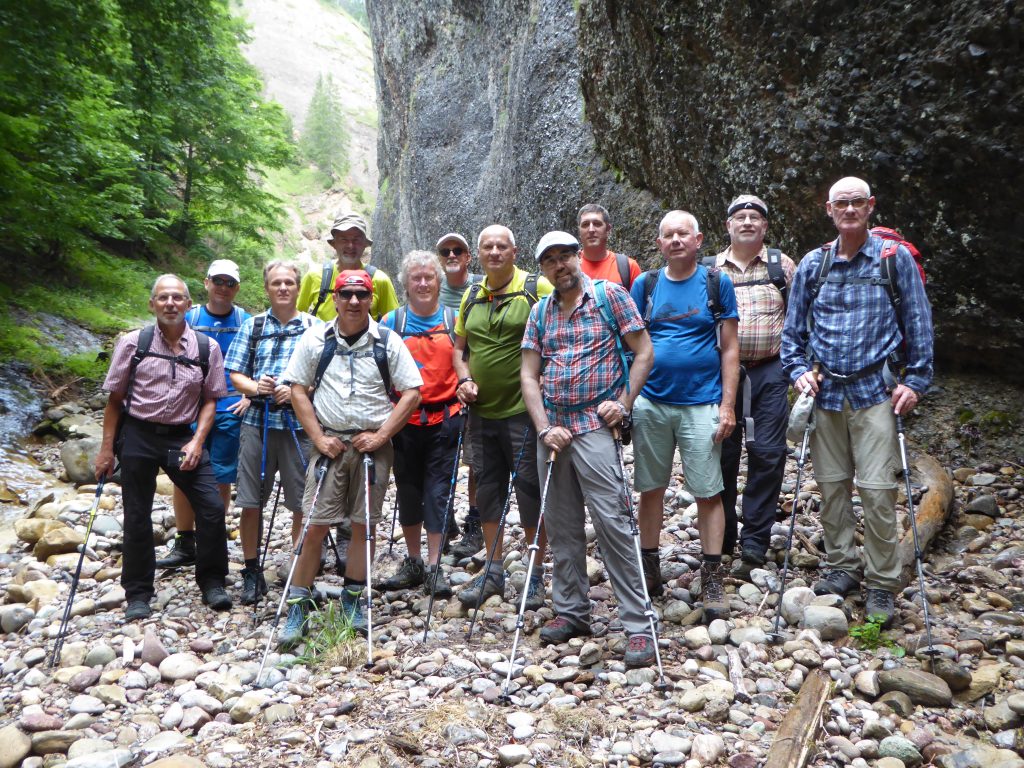 Eine sehr imposante Stelle mit vielen kleinen und grösseren Wasserfällen. Der Ort, wo der Necker entspringt. Weiter ging es zum Ellenbogen bevor für uns das Pièce de résistance begann. Der Aufstieg zum Hinderfallenchopf auf 1531 müM. Eine herrliche Rundum-Aussicht war die Belohnung für alle Turner. Von nun an ging es praktisch nur noch bergab. Via Ober Scherlet, Stofel, Hinder Chlosteralp zur Vorder Chlosteralp und vorbei an mächtigen 650-jährigen Ahornbäumen, die man zur Sicherung des Hangs nach einem Bergsturz gepflanzt hat, gelangten wir zur Alp Gössigen.